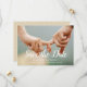Eine moderne Save the Date-Karte, um Ihr nächstes Hochzeitsdatum anzukündigen. Das Design verfügt über ein Foto, das durch ein eigenes ersetzt werden kann. Es enthält auch ein weißes Texteüberlagerungsstück mit "Save the Date" in einem stilvollen, handgeschriebenen Typografie-Schriftart, mit Ihren Namen, Hochzeitstermin und Hochzeitsort unten in einem Serif-Schriftart. Die Rückseite der Karte zeigt ein einfaches, aber elegantes Muster, das Sie durch zusätzliche Informationen Ihrer Wahl ersetzen können.