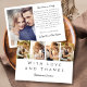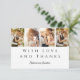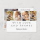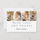 Moderne Foto Strip Wedding Dankeschön Card - Eine schicke und unverwechselbare Art, Ihre Dankbarkeit zum Ausdruck zu bringen. Dieses Dankeschön-Kartenspiel verfügt über einen Vierer-Foto-Streifen auf der Vorderseite und ein Foto auf der Rückseite, insgesamt fünf Fotos. Ideal für Paare, die ein stilvolles, herzliches Dankeschön an Freunde und Familie in einer einzigartigen Weise senden möchten. Das Design verbindet eleganten Blocktext mit wunderschöner Schriftzeichenkalligraphie und schafft so ein zeitloses und anspruchsvolles Ambiente. Personalisieren Sie diese Vorlage, indem Sie Ihre eigenen fünf Fotos hinzufügen und die Nachricht an Ihren Stil anpassen.