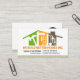 Auf dem kreativen grünen, gelben und braunen Dach mit handwerklichen Bauwerkzeugen in den jeweiligen Farbpaneelen. Die Werkzeuge können einige der Leistungen darstellen, die Sie anbieten können, z.B. den Hammer für die Zuhause-Reparatur, die Pinselleiter für die Malerei und die Schaufellergabel für Landschaftsgestaltung, Gartenarbeit. Unterhalb dieses Designs liegt Ihr Firmenname in dunkelorange. Eine schlichte vertikale Linie markiert Ihren angesehenen Namen und Jobtitel auf dem verlassen gegenüber den Kontaktdaten in die entgegengesetzte Richtung. Ein dunkelgrüner Streifen kapselt die Basis. Hinter dem Blatt sind Details an der rechten Kartenwand mit einem goldenen Zuhause-Landschaftslogo, das Sie oben verwenden können. Darauf folgen der Firmenname, die Kontaktdaten und ein Slogan. Ein ähnlicher grüner Streifen kapselt die Kartenbasis. Diese Karte wäre ideal für Gebäude- und Bauthemen.