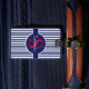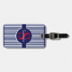 Stilvolles marineblau-rot gestreiftes Anfangsmonog Gepäckanhänger