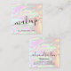 Herrliches Make-up Visitenkartendesign mit farbenfroher holografischer Textur in Imitaten und elegantem Kalligraphie-Schriftart.