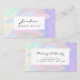 Schönes Makeup Visitenkartendesign mit bunten Imitaten holografische Textur und eleganten Kalligraphie Schriftart.