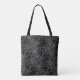 Stilvolle monochromatische Grau/Schwarz-Blütenmuster Tote Tasche. Einfaches, elegantes Design mit hübschem, gürtelfarbenem Blumenmuster in verschiedenen Grautönen auf schwarzem Hintergrund.