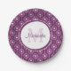 Mit diesen stilvollen Tellern aus Monogramm-Streifen aus Musterpapier mit mädchenhaften lila und weißen Herzen und Kreise verleihen Sie Ihrem Party einen modernen Schub. Personalisieren Sie, indem Sie den Namen und die mit Monogramm Initiale des Party Mädchens in den trendigen Rahmen des Kreises einfügen.