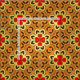 Nahtlos dekoratives geometrisches Muster mit geometrischen Formen in Orange, Rot, Gelb und Schwarz.