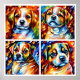 Dieses niedliche Poster ist perfekt für einen Hundefreund mit 4 bezaubernden, stylisierten Welpen in lebhaften Farben.