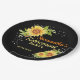Stilvolle Retirement Party Teller mit schwarzem Hintergrund, Aquarellgelb blühende Sonnenblumen und Lichter an der Saite. Ein großartiges Objekt, um ein Party Tisch für Rentner, Geburtstage, Verlobung, Babydusche, Hochzeitstag und vieles mehr zu dekorieren. Passen Sie das Ereignis an und personalisieren Sie es mit dem Namen und dem Datum.