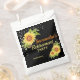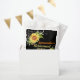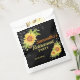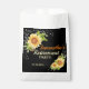 Stilvolle Retirement Gastgeschenk Tasche mit schwarzem Hintergrund , Aquarellgelb blühende Sonnenblumen und Saitenleuchten. Ein großartiges Objekt, um ein Party Tisch für Rentner, Geburtstage, Verlobung, Babydusche, Hochzeitstag und vieles mehr zu dekorieren. Passen Sie das Ereignis an und personalisieren Sie es mit dem Namen und dem Datum.