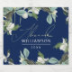 Genießen Sie die Eleganz unseres exquisiten Schaumweinlabels mit einem stilvollen Design Vintager, zarter weißer Blume und üppigen grünen Blätter Set vor einem schicken blauen Hintergrund. Personalisieren Sie es mit Ihrem eigenen Namen und Datum in einem modernen, handschriftlichen Stil und schaffen Sie eine einzigartige Touch für Ihre Feier.