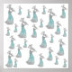 Ein schönes Skizzenbild eines weiblichen Pfau-Vogels in einem Muster. Das Design ist in Weiß, Grau und Türkis gehalten.