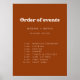Stilvolles Retro Burnt Orange Wedding Order of eve Poster