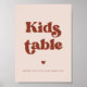 Kindertisch Hochzeitszeichen. Ein Retro-Chic-Thema: adoptier dieses Vintage und stilvolle typografische Design für Ihre Hochzeitsarbeit mit einem pfirsichrosa Thema. Einfach zu mischen und mit unserer ähnlichen Schreibwaren in gebranntem Orange, Terrakotta und braunem Zucker erhältlich. Vollständig anpassbare Textfarben und Hintergründe.