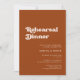 In der Nacht vor... Vergewissern Sie sich, dass alles perfekt für den großen Tag ist; laden Sie sich ein, ein modernes Probe für Ihr Hochzeitsessen zu genießen. Ein Retro-Chic-Thema: adoptier dieses leicht Vintage und stilvolle typografische Design für Ihr Hochzeitsgeschenk mit einem verbrannten Orange-, Terrakotta- und Braun-Zucker-Thema. Vollständig anpassbarer Text, Farben und Hintergrund.