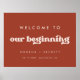 Herzlich willkommen auf unserem Beginnsign. Ein Retro-Chic-Thema: adoptier dieses Vintage und stilvolle typografische Design für deine Hochzeitsarbeit mit einem Terrakotta-Farbthema. Leicht zu mischen und mit unserer ähnlichen Schreibwaren erhältlich in pfirsichrosa, rostorange & braun Zucker. Vollständig anpassbare Textfarben und Hintergründe.