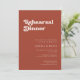 In der Nacht vor... Vergewissern Sie sich, dass alles perfekt für den großen Tag ist; laden Sie sich ein, ein modernes Probe für Ihr Hochzeitsessen zu genießen. Ein Retro-Chic-Thema: adoptier dieses leicht Vintage und stilvolle typografische Design für Ihr Hochzeitsgeschenk mit einem verbrannten Orange-, Terrakotta- und Braun-Zucker-Thema. Vollständig anpassbarer Text, Farben und Hintergrund.