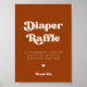 Windeln Raffle Spiel Baby Dusche Schild. Ein Retro-Chic-Thema: adoptier dieses Vintage und stilvolle typografische Design für dein Baby Shower Schreibtisch mit einem verbrannten orangefarbenen Thema. Leicht zu mischen und mit unserer ähnlichen Schreibwaren erhältlich in pfirsichrosa, terracotta & braun Zucker. Vollständig anpassbare Textfarben und Hintergründe.