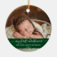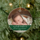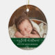 Elegantes, trendiges Script Mein erstes Weihnachtskind Foto Grün Ornament mit Schneeflocken zurück