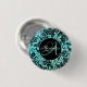 Stilvolles Türkisblau und Schwarz-Blütenmonogramm Button