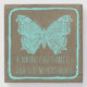 Stilvolles Tiffany Blue Wood Butterfly Zitat 4" x 4" Custom Untersetzer.