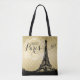 Diese themed Tasche Chic-Imitatgoldpolkapunkt Paris kennzeichnet eine schwarze Eiffel-Turmgraphik und einen Namen, damit Sie auf der Front personifizieren. Rückseite hat eine Monogramminitiale, damit Sie auch personifizieren. Entworfen durch weltberühmtes Künstler © Tim Coffey.