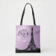 Diese Polkapunkt Paris des Chic lila themed Pastelltasche kennzeichnet eine schwarze Eiffel-Turmgraphik und einen Namen, damit Sie auf der Front personifizieren. Rückseite hat eine Monogramminitiale.