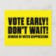 Stimme früh! Warte nicht! Vorsicht vor Wählerunter Postkarte