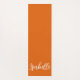 Yoga Mat - Einzigartiges Design mit hellen, leuchtenden Orangen- und Elfenbeinherzen und dem Aufschreiben "Just Breathe" auf einem hellen Elfenbeinhintergrund und Ihrem Namen in Elfenbein auf einem soliden, hellen, orangefarbenen Hintergrund