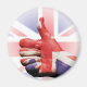 Ein großer Daumen oben "wie" mit der Union Jack Fahne auf einer Hand gemalt. Im Hintergrund ist die Union Jack. Großartige Geschenke für patriotische Feiertage, einen Soldaten oder sogar einen Geburtstag.
