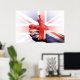 Ein großer Daumen oben "wie" mit der Union Jack Fahne auf einer Hand gemalt. Im Hintergrund ist die Union Jack. Großartige Geschenke für patriotische Feiertage, einen Soldaten oder sogar einen Geburtstag.