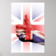 Ein großer Daumen oben "wie" mit der Union Jack Fahne auf einer Hand gemalt. Im Hintergrund ist die Union Jack. Großartige Geschenke für patriotische Feiertage, einen Soldaten oder sogar einen Geburtstag.