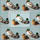 Dieses Tiergewebe kennzeichnet ein wiederholendes Muster von drei Stockentenenten. Die Männer haben schillernde grüne Köpfe, weiße Körper und gelbe Schnäbel. Die Federn der Frau sind braun und Gold mit einem orange Schnabel. Sie sind solche hübschen Wasservögel! Fertigen Sie leicht die hellblaue Hintergrundfarbe bis die besonders an, die gut Anzug Ihr spezielles Projekt wird.