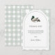 Feiern Sie die bevorstehende Ankunft mit dieser charmanten Babyparty-Einladung in Entenmotiv, die mit einer wunderschönen Wasserfarben-Stockentenente, sanften Salbeigrün-Tönen und einem eleganten Bogen-Layout ausgestattet ist. Perfekt für Wald-, rustikale oder geschlechtsneutrale Babyparty-Themen, verleiht dieses Design Ihrer Veranstaltung einen Hauch von naturinspiriertem Charme.