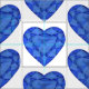 Sapphire Herzen farbenfrohe Reflexionen Aquarellkunst. Hintergrundfarbe kann geändert werden, wenn erforderlich, aktuell weiß. Original blaues Saphir-Juwel Aquarellmalerei von Sarah Trett. www.sarahtrett.com für www.mylittleeden.com