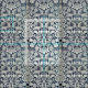 Schönes Jugendstil-Gewebe aus blauem und weißem Blattwerk, Weinbergen, Trauben und Sonnenblumen.