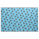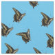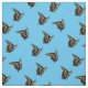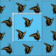 Fotografisches Bild des schwarzen und gelben Schmetterlings, repliziert in drei verschiedenen Winkeln, dann gekachelt über Stoff. Anise Frack (Papilio zelicaon) Hellblauer Hintergrund.