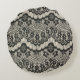 Stoffe Spitzen-Ornament auf Weiß. Rundes Kissen