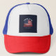Ein mächtiges und patriotisches Grafikdesign mit der amerikanischen Flagge mit dem fett gedruckten Text "Proud to be American" in lebhaften Farben Rot, Weiß und Blau. Das Design ruft ein Gefühl des Nationalstolzes und der nationalen Einheit hervor und betont die Kernwerte Freiheit und Demokratie.