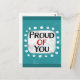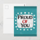 "Stolz von dir" ist ein niedliches inspirierendes oder motivierend Zitat mit einer weißen Akzent-Form, umgeben von weißen, texturierten, whimsikalen Punkten.