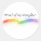 Ein unterstützendes, Gay Pride-Design für Eltern mit einem Regenbogenfarbband in Aquarelltönen mit dem Text "Stolz auf meine Tochter".