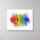Dieses farbenfrohe Kunstwerk besticht durch das Wort Stolz über ein weiches Aquarelldesign.