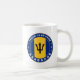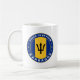 Die Nationalflagge von Barbados ist in eine Kreisform eingebettet, die selbst in den Flaggenfarben gefärbt ist. Neben dekorativen Sternen gibt es den stolzen, patriotischen Text.