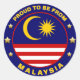 Die Nationalflagge Malaysias ist in eine kreisförmige Form eingebettet, die an sich in den Flaggenfarben verziert ist. Neben dem Text gibt es auch dekorative Sterne, die als Trenner verwendet werden.