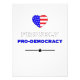 Herzlich Willkommen im Design der amerikanischen Flagge. "Stolz" ist unten geschrieben, in fett, weiß und schwarz Kontur, mit "Pro-Demokratie" unten geschrieben, als fett, blau. Darunter ist ein kleiner schwarzer Stern mit Linien auf jeder Seite. Erhältlich in anderen Größen und Papierveredelungen.