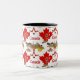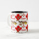 Niedliches kanadisches Motiv mit Ahornblättern, Biber in einem Berghut, Krug aus Ahornsirup, Hockeyschläger, sitzender Elch und anderen kanadischen Symbolen.