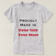 Dieser lustige T - Shirt der Mutterschaft wird sicher lachen. Im Standardtext steht "Proudly Made in", plus zwei Zeilen Text. Standardmäßig sind schwarz und rot graue Buchstaben, aber Sie können Farben und Text anpassen. Alle Rechte vorbehalten © 2017 Marcia und Alan Socolik.