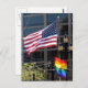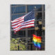 Die amerikanische Flagge und die Gay Pride-Fahne fliegen zusammen in San Francisco, CA. Das Foto wurde während der Pride Parade im Juni 2007 aufgenommen