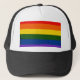 Große Regenbogenflagge auf einem Fernlastfahrerarthut.