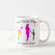 Schöne Mutter und ihr Kind mit Autismuspuzzlespielen gehend zusammen umgeben durch Herzen, Blumen und Schmetterlinge. Einzigartiger Autismus-Bewusstseinsentwurf, zum einer stolzen Autismus-Mama zu stützen.