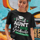 Feiern Sie den Abschluss Ihrer Nichte oder Neffen mit diesem modernen T - Shirt mit einer "Proud AUNT of a 2023 Graduate"-Typografie in schwarz-grünen Schriftart, die mit einem schwarzen Gradmütze mit grüner Tassel verziert sind; personalisieren Sie diesen T - Shirt einfach mit dem Jahr des Abschlusses und dem Namen des Absolventen, indem Sie die Vorlagenfelder bearbeiten.