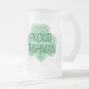 Großes hellgrünes keltisches Knoten-Kleeblatt und stolzer Ire im Großen dunkelgrünen Text.